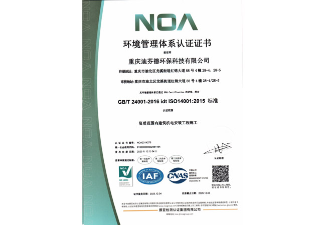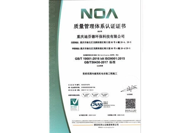 重慶迪芬德環保科技有限公司,成立于2012年9月。公司擁有建筑裝修裝飾工程貳級、建筑機電安裝工程貳級、消防設施工程貳級資質,并通過ISO 9001質量管理體系、ISO 14001環境管理體系、ISO 45001職業健康安全管理體系認證,是專業從事空氣凈化類的高科技企業,公司秉承“科技創造價值、超越客戶期望”的理念。